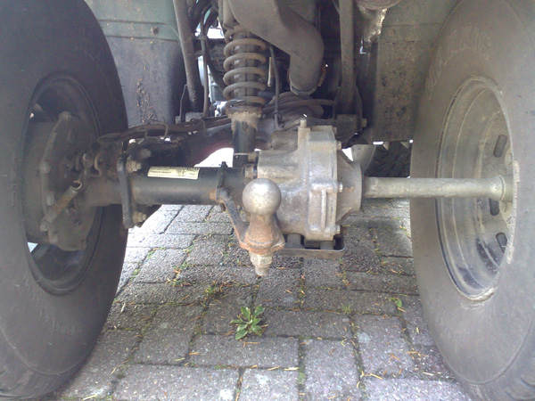 links die gekapselte Trommelbremse und in der Mitte das Gehäuse des Kardanantriebes |